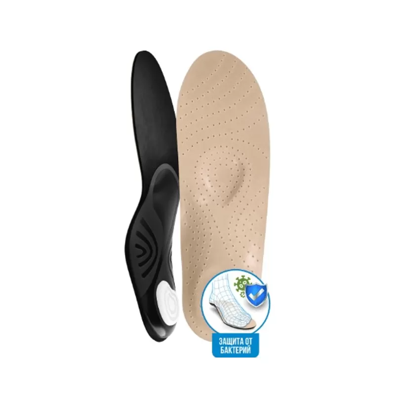 - Вспененный латекс с ионами серебра по всей поверхности стельки обеспечивает хорошую амортизацию, разгрузку болезненных зон стопы, а также защиту от возникновения неприятного запаха в обуви (за счёт антибактериального эффекта). Доказанный антибактериальный эффект.