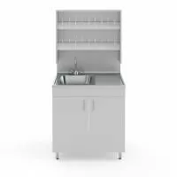 НВ-800 МО — это стол с одной мойкой из нержавеющей стали и с пластиковой сушилкой на 18 мест. Предназначен для работы стоя: высота до столешницы 85 см.