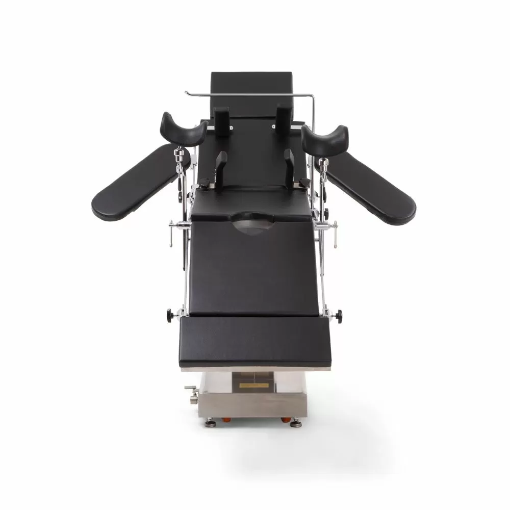 - Стол оснащен регулируемым по высоте поясничным отделом, который поддерживает соответствующий отдел спины пациента во время хирургических манипуляций.