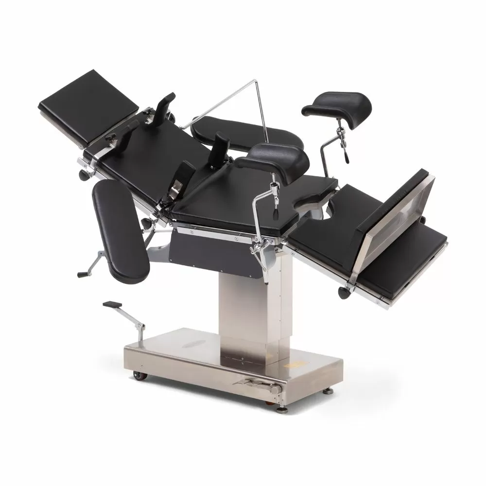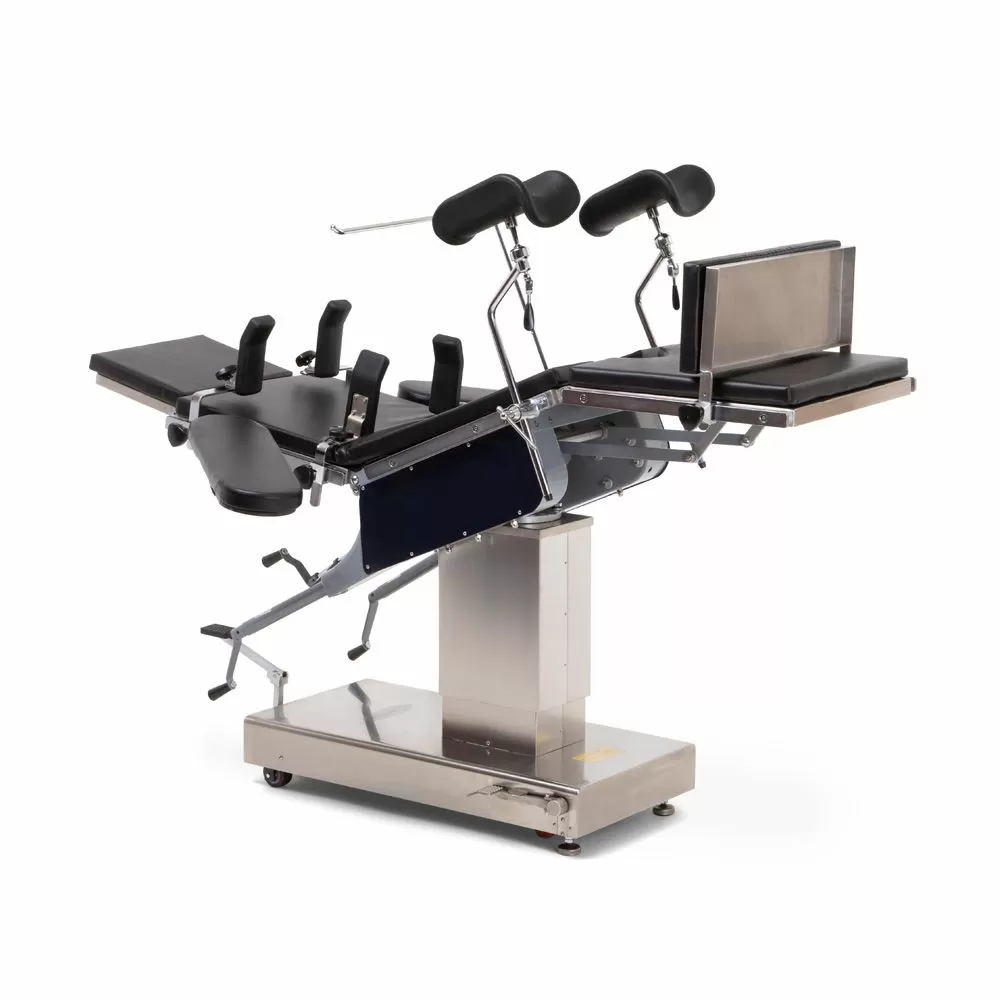 ST-II – функциональный операционный механогидравлический 4-секционный стол с удобной механической регулировкой головной, спинной и голеностопной секций. Съемные опоры для плеч, тела, рук и ног также можно настраивать для обеспечения необходимого положения пациента и надежной его фиксации. ST-II управляется полностью механически и не требует подключения к сетям электропитания.