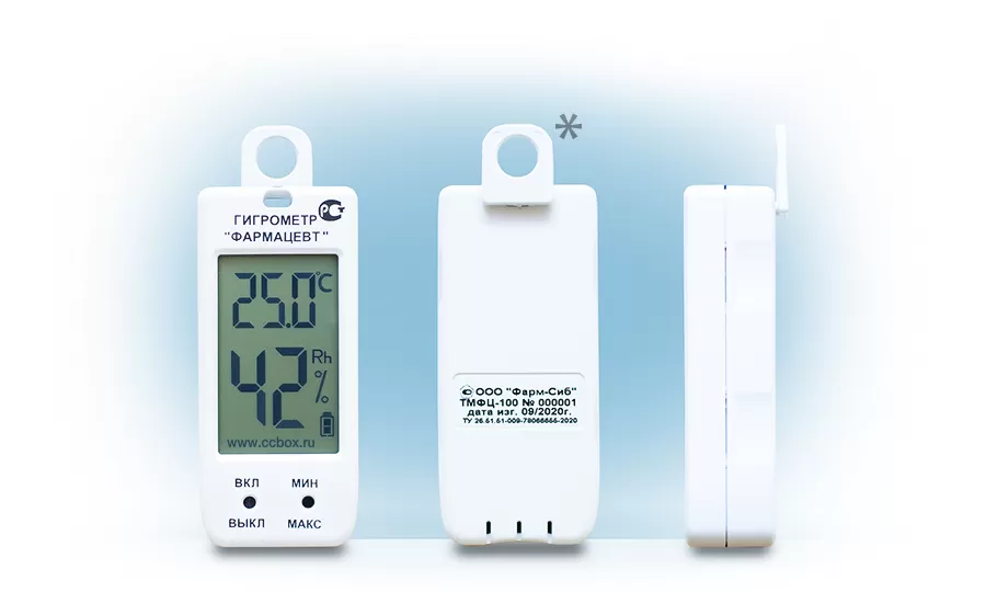 Гигрометр «ФАРМАЦЕВТ» служит надежным инструментом контроля температуры и влажности в процессах производственного контроля и облегчает работу ответственных специалистов при соблюдения требований установленных Приказами Росздравнадзора №646н, №706н, №9438, условий хранения и транспортировки лекарственных средств, вакцин и термолабильных лекарственных средств, микроклимата помещений лечебных учреждений, СанПин 2.1.3.2630-10, стандартов GPP и GDP.