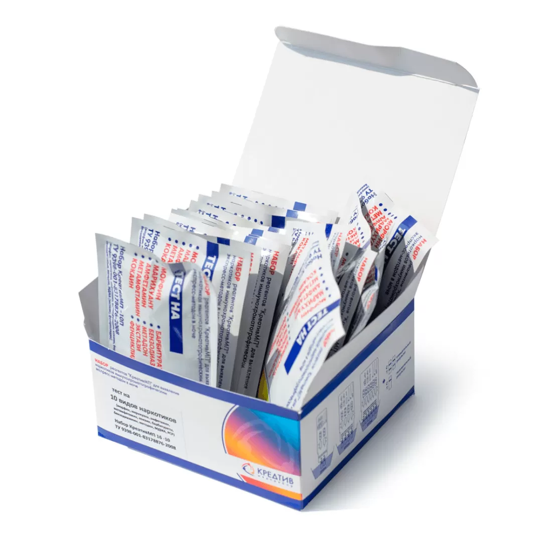 Тесты по моче КреативМП-10 для определения 10 видом наркотиков, 16 шт. Цена за упаковку из 16 штук.Мультипанель погружного типа, применяются для выявления факта употребления нескольких видов наркотиков.