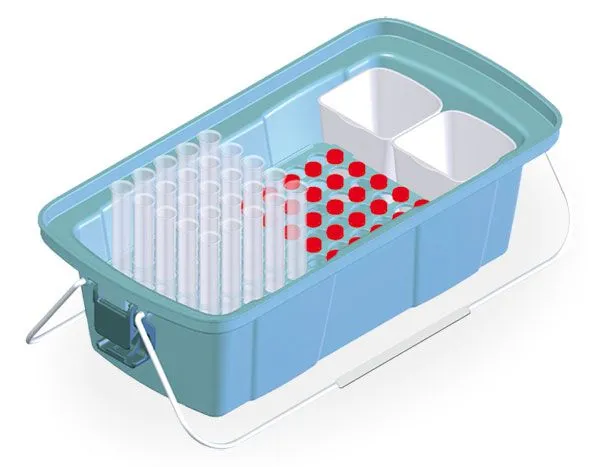 Укладка обеспечивает санитарно-эпидемиологическую безопасность при транспортировке биологического материала внутри помещений и между отдельными корпусами в ЛПУ, на станциях переливания крови, СЭС и т.д.