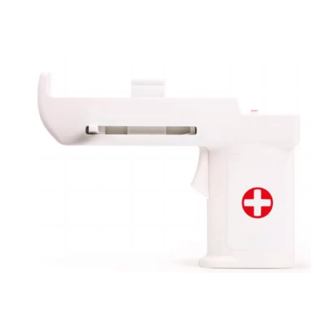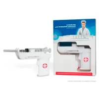 - Обработайте место инъекции дезинфицирующим средством и установите шприц-пистолет на расстоянии 2-3 мм от кожи под углом 90 градусов. Резко нажмите на курок - игла войдет в мышцу.