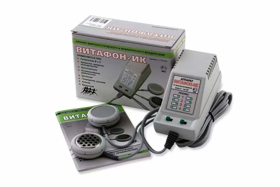 - Аппарат "Витафон-ИК" использует взаимоусиление инфракрасного и виброакустического воздействия, оказывая тем самым противовоспалительное, противоотёчное, обезбаливающее, трофическое и регенеративное действие.