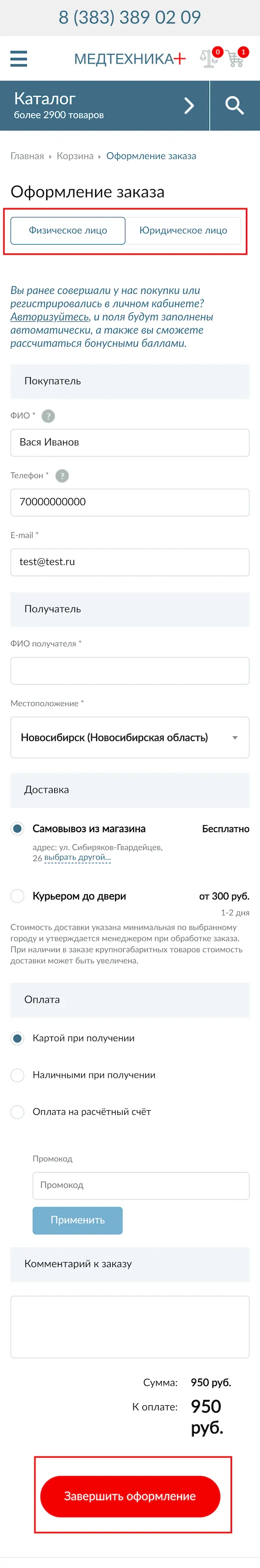 Шаг 4. Оформите заказ: выберите на кого будет происходить оформление (Физическое или Юридическое лицо), после чего заполните контактную информацию, выберите удобный способ доставки и оплаты. Подробнее об условиях доставки и оплаты вы можете прочитать здесь. Пожалуйста, внимательно вводите номер телефона и электронный адрес, чтобы мы смогли согласовать с вами доставку и прислать сообщения об изменениях статуса заказа.