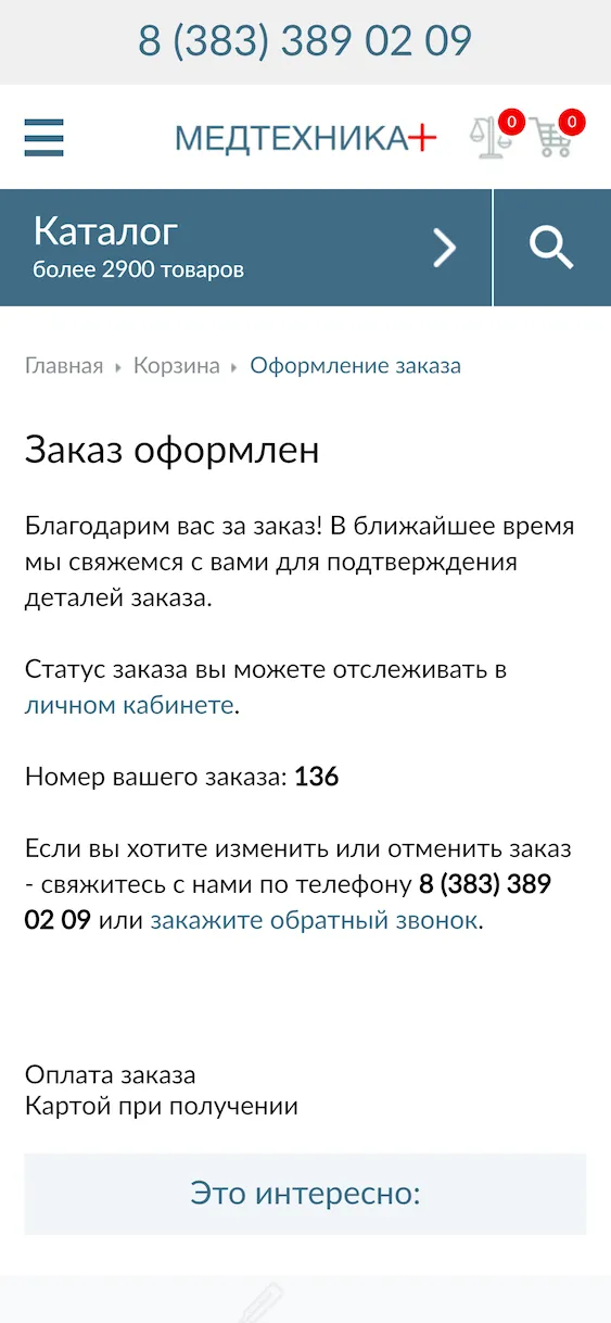 Шаг 5. В конце оформления заказа Вы увидите сообщение с номером заказа. Ваш заказ будет обработан и менеджер свяжется с Вами в ближайшее время.